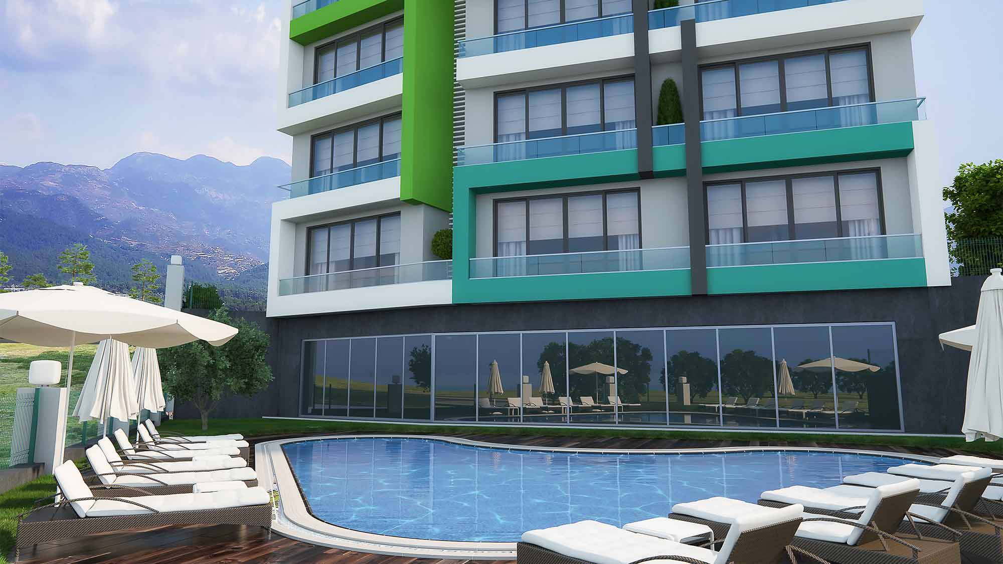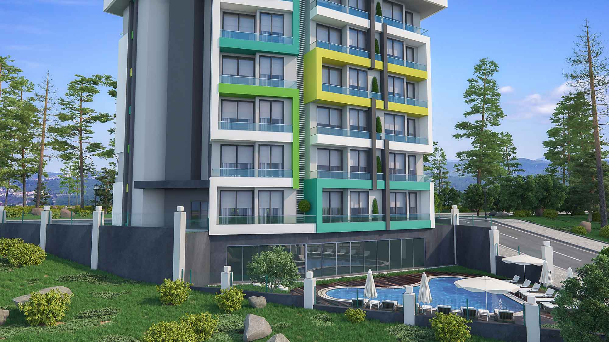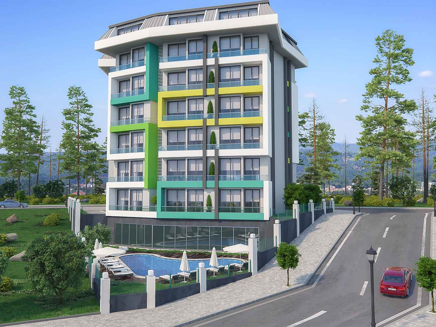 The Avsallar Green Life project consists of 1 block, 7 floors with 49 apartments on an area of 984,43 m2. It is built in a position where it dominates the sea and mountain scenery. Where the sea and the sun meet the green of nature, you are waiting for a new life.