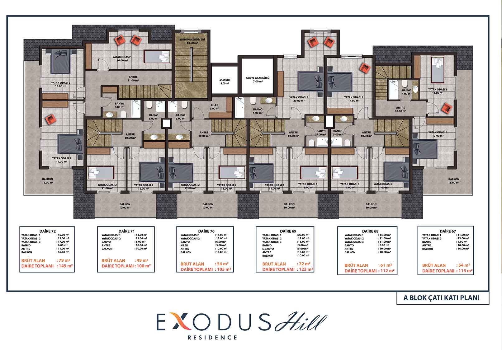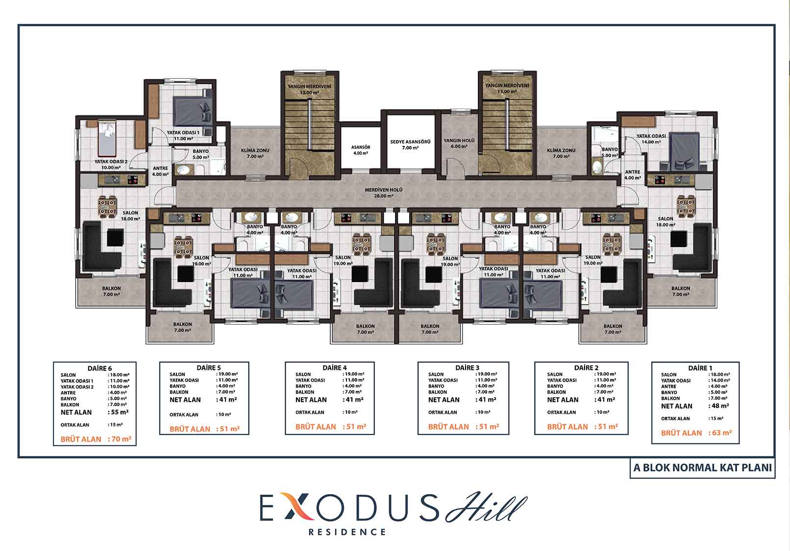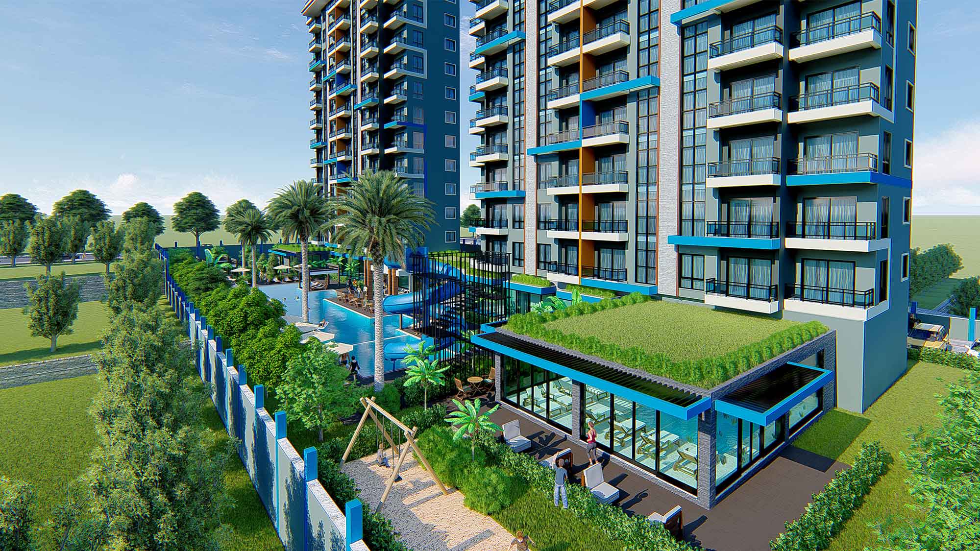 Exodus Hill Residence is located in a serene and peaceful setting in the hills above Mahmutlar, arguably the most most rapidly developing property investment region of Alanya. It sits close to Exodus Residence, the first in our ‘Exodus’ line of projects. The project consists of 2 Blocks of 12 storeys and the Blocks will be positioned so that stunning far-reaching sea views are afforded from all apartments – there will be a total of 144 apartments.