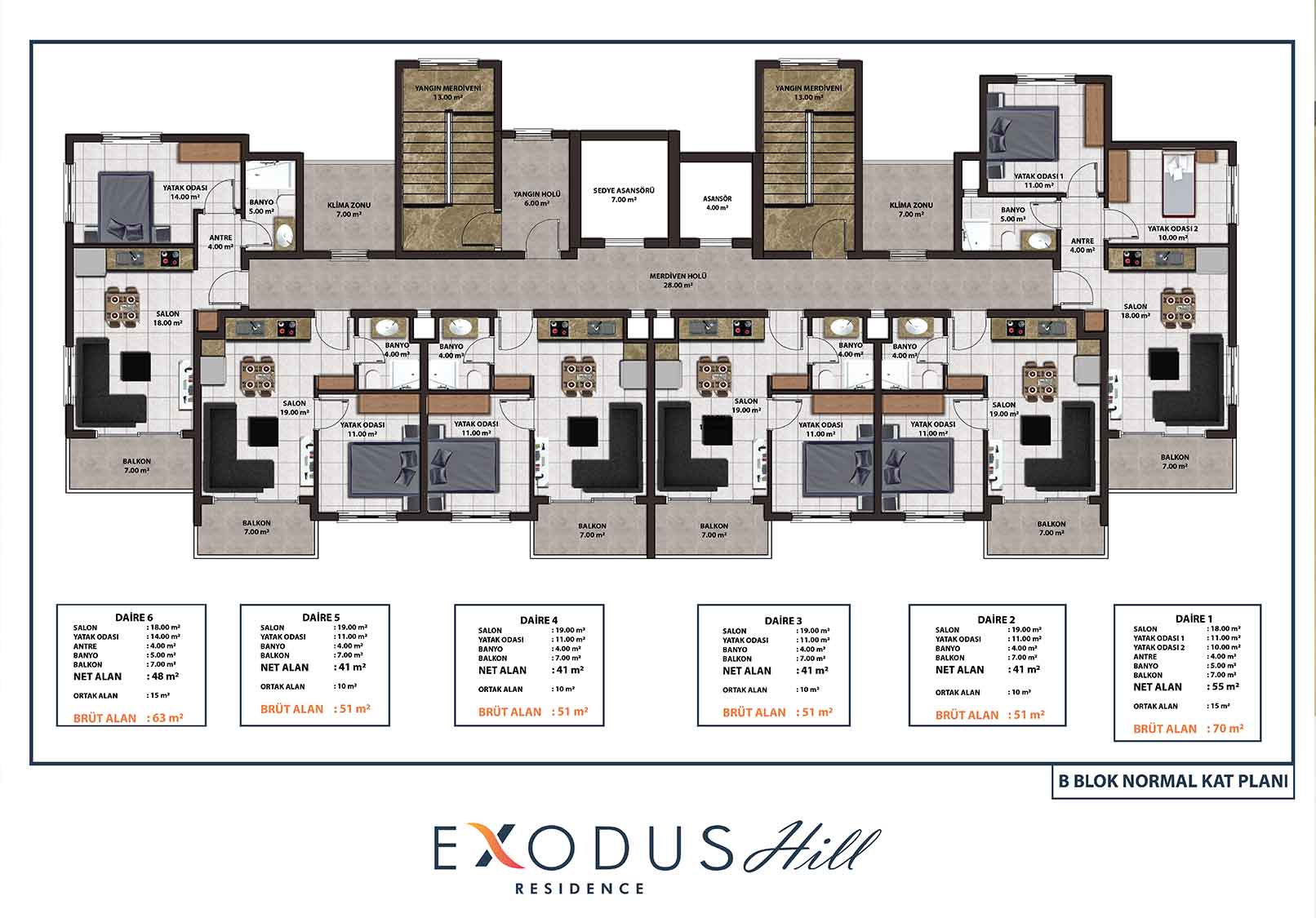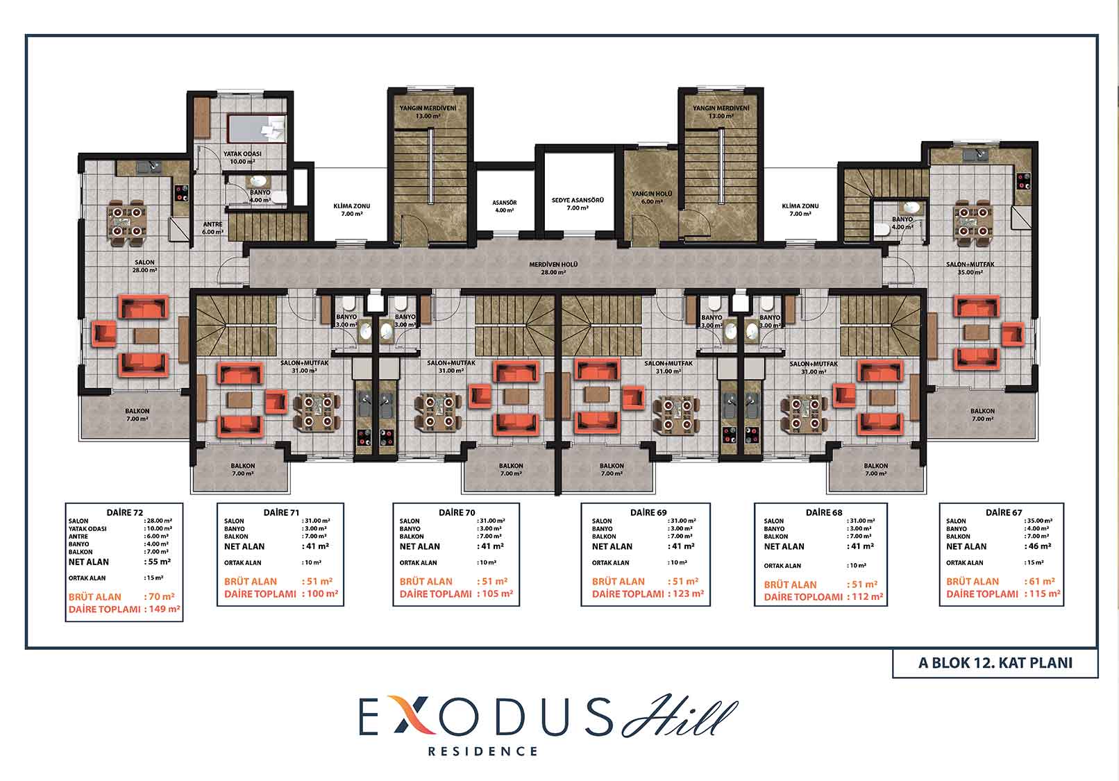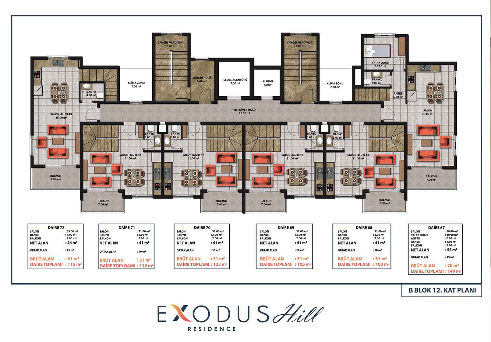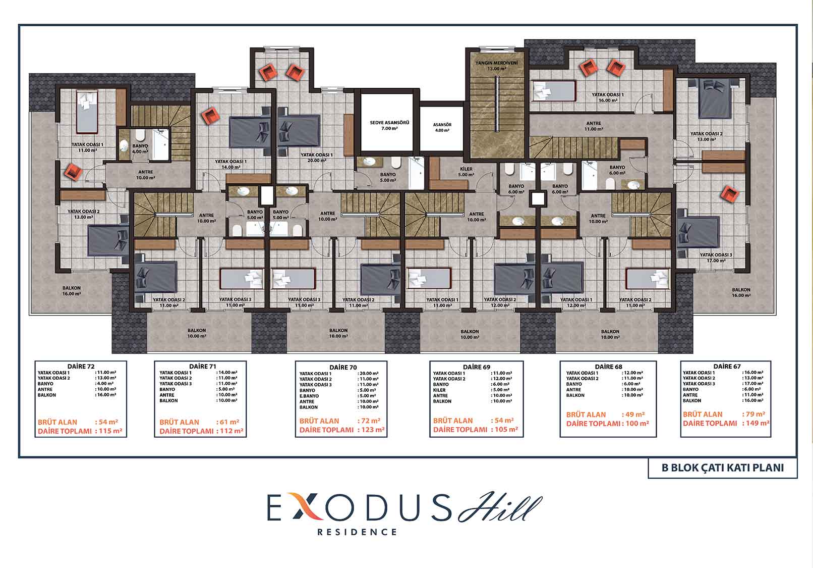 Exodus Hill Residence is located in a serene and peaceful setting in the hills above Mahmutlar, arguably the most most rapidly developing property investment region of Alanya. It sits close to Exodus Residence, the first in our ‘Exodus’ line of projects. The project consists of 2 Blocks of 12 storeys and the Blocks will be positioned so that stunning far-reaching sea views are afforded from all apartments – there will be a total of 144 apartments.